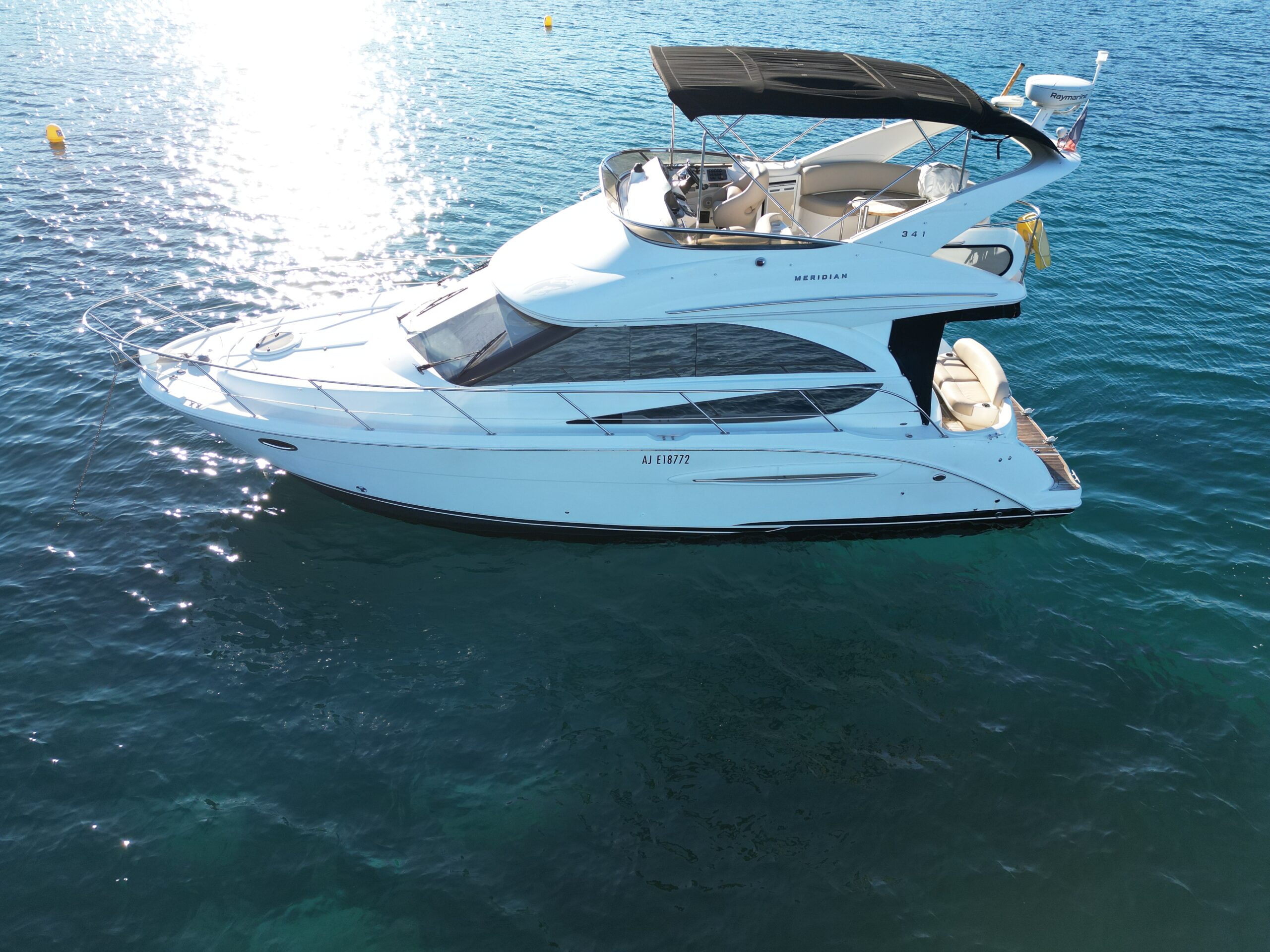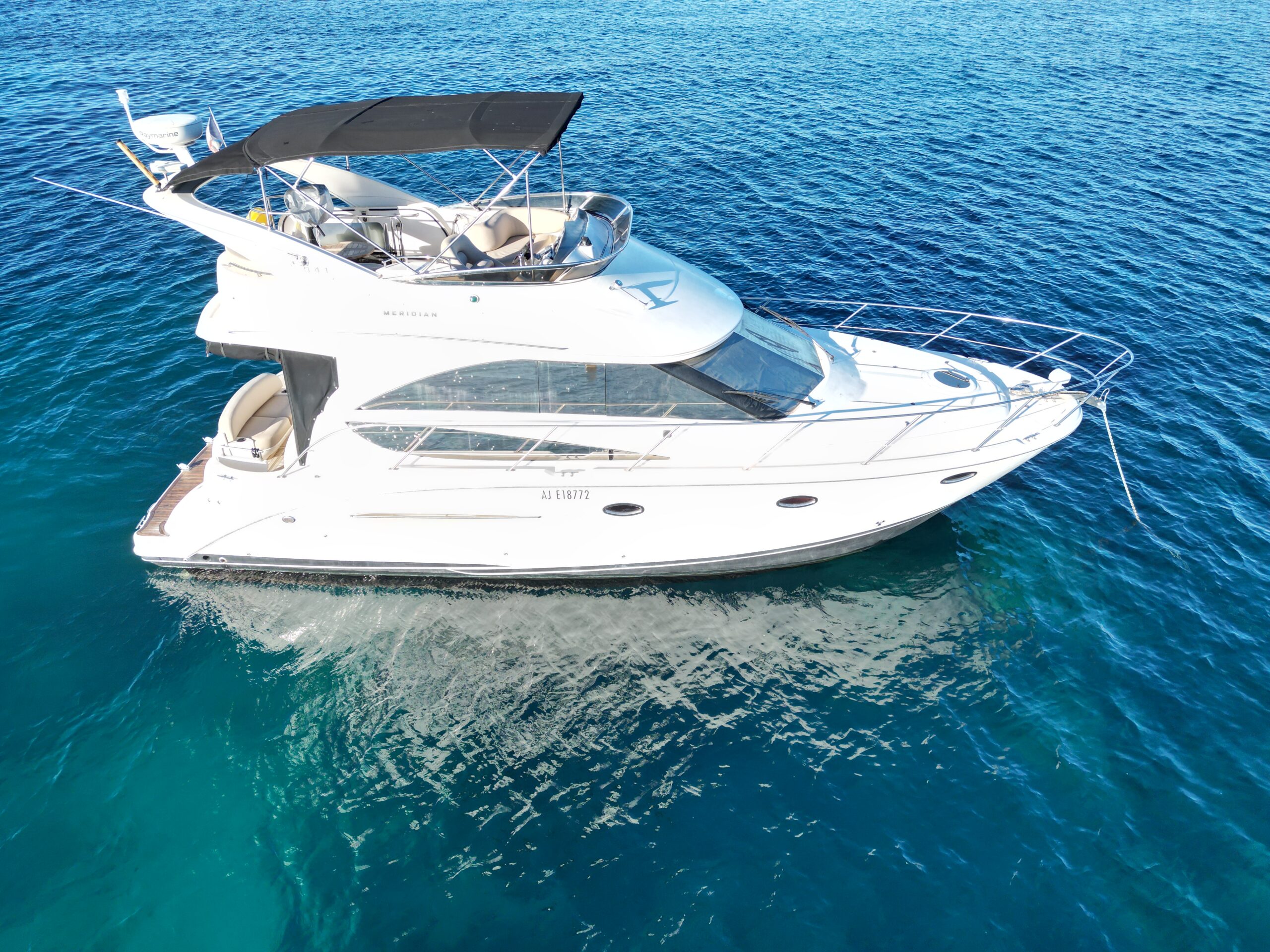 A true benchmark in the compact flybridge category, the Meridian 341 Sedan combines comfort, generous interior volume and excellent handling at sea. Its efficient hull and remarkable stability make it an ideal yacht for coastal cruising as well as extended getaways. Known for its reliability and elegance, it offers a layout designed for pleasure at sea and comfortable living on board.
