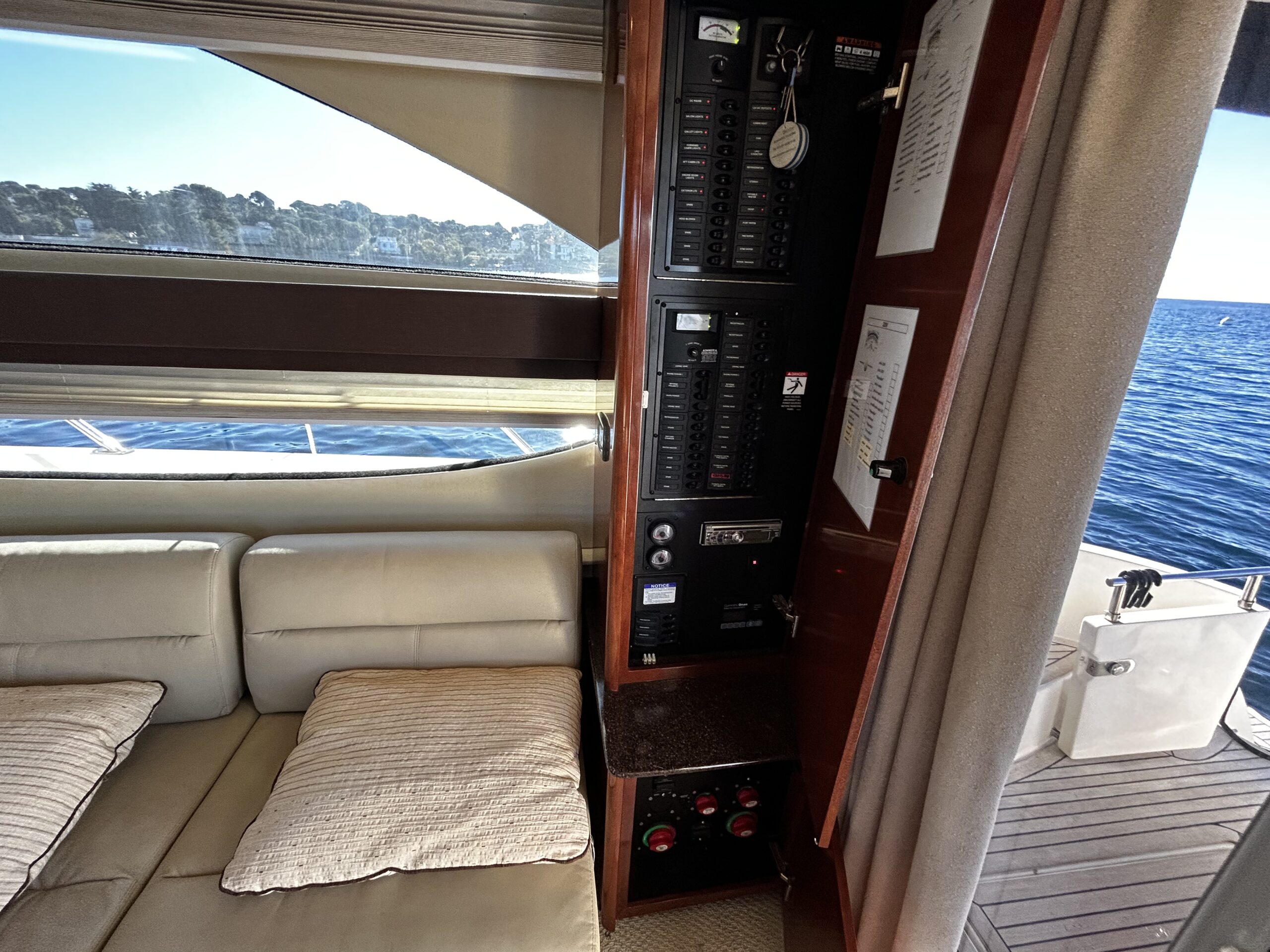 Wide sliding glass door to the main salon