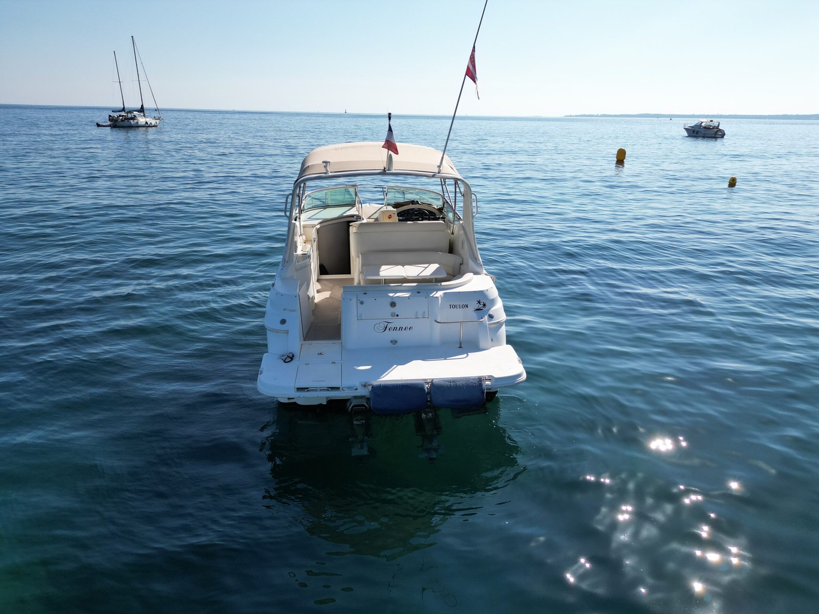 Entièrement entretenu et mis à niveau ces dernières années, il bénéficie de moteurs remplacés en 2024 (Volvo Penta V6 4.3 GI – 100 heures seulement) et d’une étanchéité d’embases refaite en 2025.