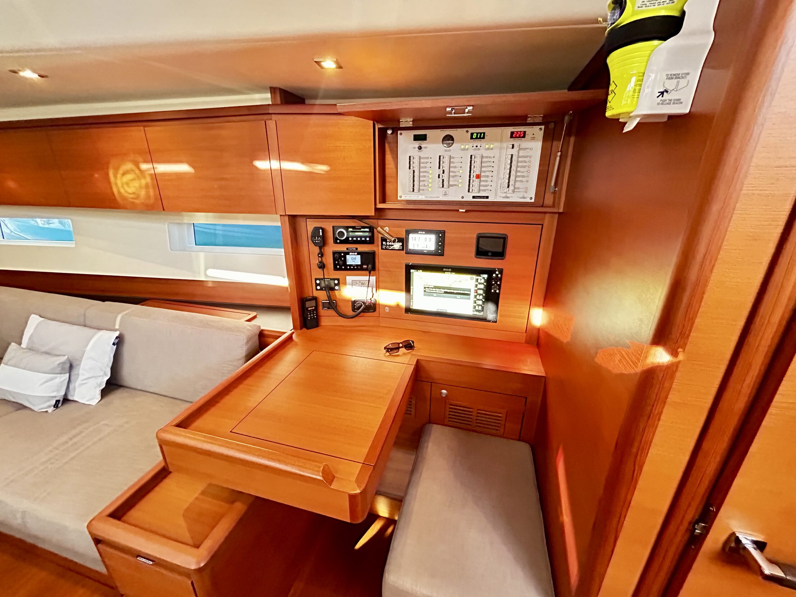 • Électronique : Pack complet B&G H5000, 2 écrans Zeus 9″ aux barres + 1 écran Zeus 16″ à la table à cartes, Radar Halo 20+, AIS, Pilote auto H5000.