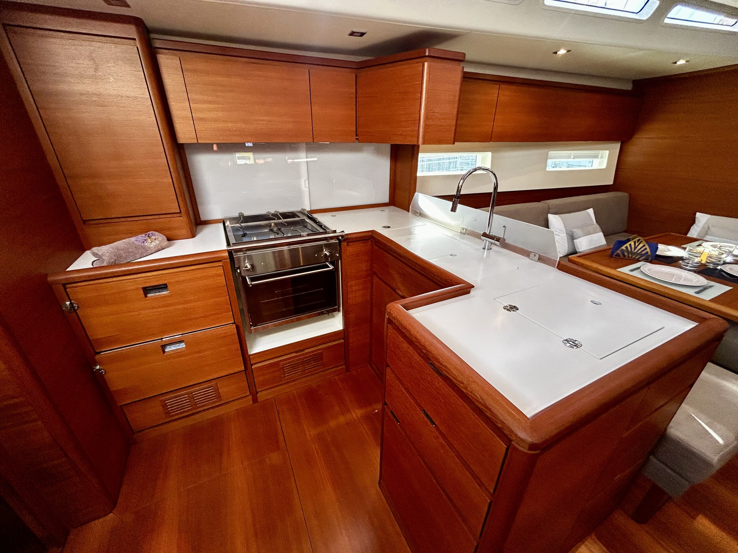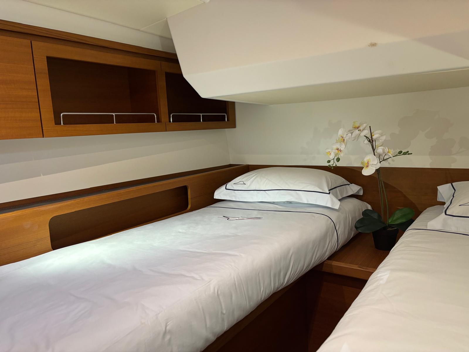 • Rigging & Sails: Through-deck mast, Electric furling genoa, North Sails 3Di Endurance sails, Code 0 on furler, Electric Harken winches.